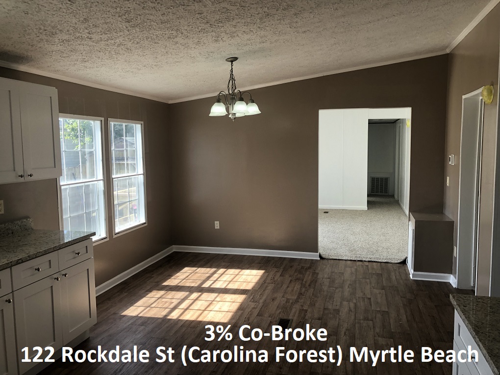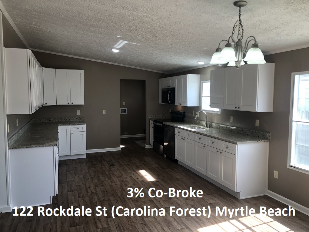 Carolina Forest - 5 bed, 3 Full baths. Upgrades for 2025 include a new HVAC system, including all new flex duct, white kitchen cabinets with soft-close hinges, granite countertops, sink, faucet, dishwasher, microwave, range and hot water heater. Fresh paint includes ceiling, closets, and every wall in the home, all bathroom toilets and vanities, and new floor coverings in every room. Gutters front and back of home, fenced in back yard (no gate), rebuilt stairs and deck. If extra parking is needed, you have room to expand—wood fireplace in family room, large 12' x 22' eat-in kitchen area. The home has been retired on land, making financing easier. Broker/Owner
